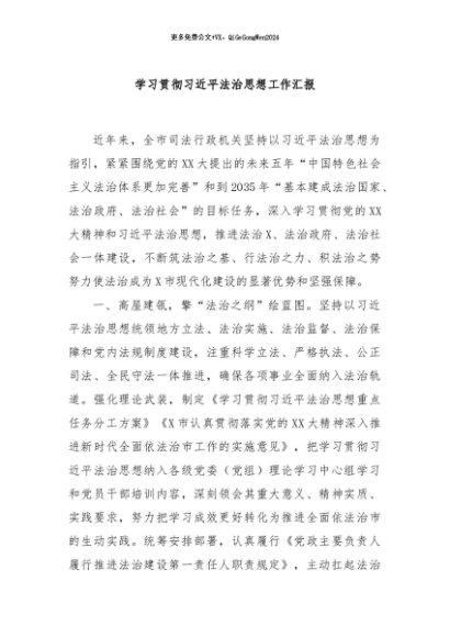 / 【七哥公文】2024年:学习贯彻习近平法治思想工作汇报+更多免费公文+VX:QiGeGongWen2024