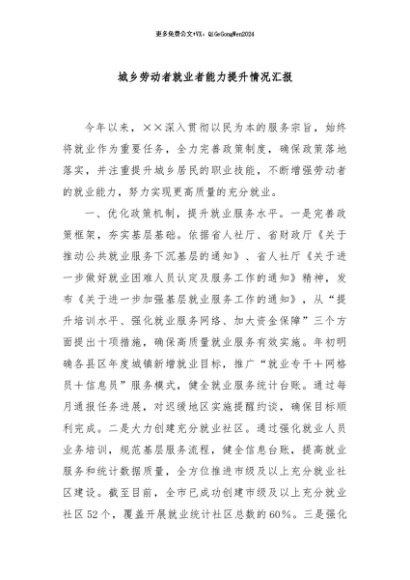 / 【七哥公文】2024年:城乡劳动者就业者能力提升情况汇报+更多免费公文+VX:QiGeGongWen2024