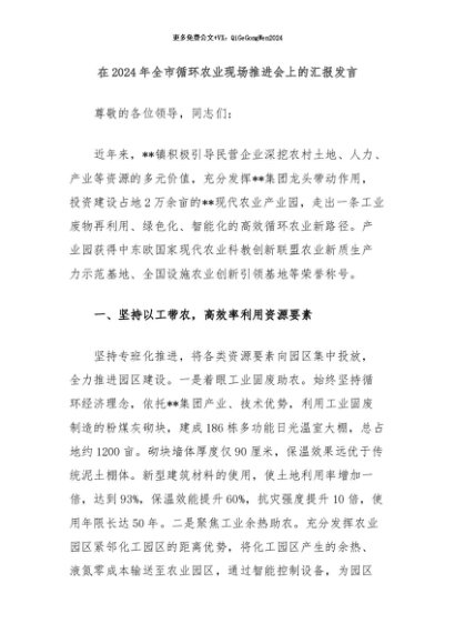 / 【七哥公文】2024年:在2024年全市循环农业现场推进会上的汇报发言+更多免费公文+VX:QiGeGongWen2024