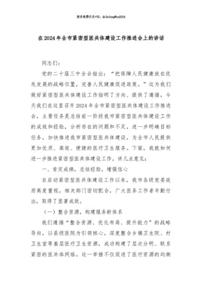 【七哥公文】2024年:在2024年全市紧密型医共体建设工作推进会上的讲话+更多免费公文+VX:QiGeGongWen2024