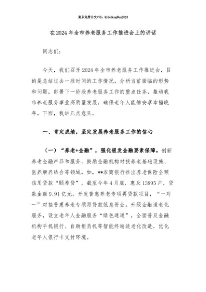 / 【七哥公文】2024年:在2024年全市养老服务工作推进会上的讲话+更多免费公文+VX:QiGeGongWen2024