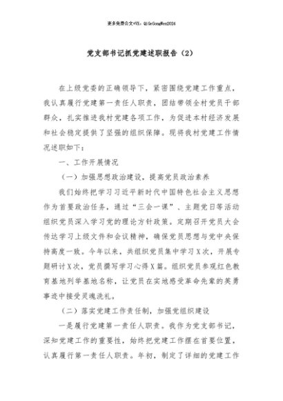 / 【七哥公文】2024年:党支部书记抓党建述职报告(2)+更多免费公文+VX:QiGeGongWen2024