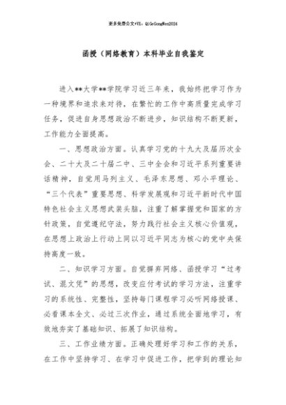 / 【七哥公文】2024年:函授(网络教育)本科毕业自我鉴定+更多免费公文+VX:QiGeGongWen2024