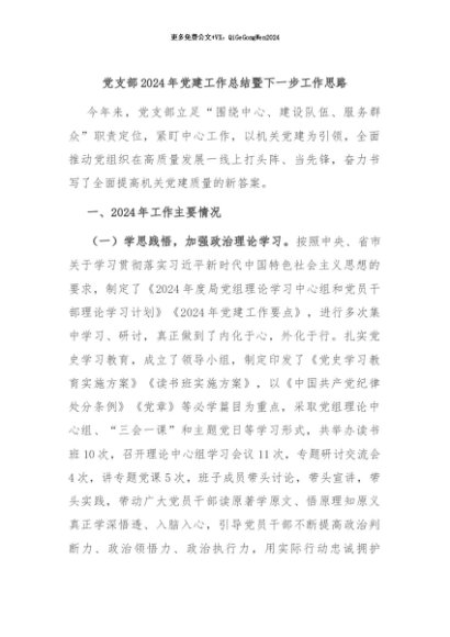 / 【七哥公文】2024年:党支部2024年党建工作总结暨下一步工作思路+更多免费公文+VX:QiGeGongWen2024