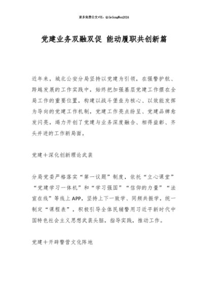 / 【七哥公文】2024年:党建业务双融双促 能动履职共创新篇+更多免费公文+VX:QiGeGongWen2024