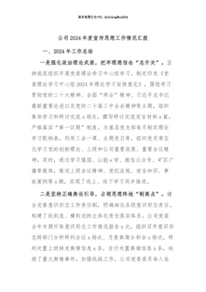 / 【七哥公文】2024年:公司2024年度宣传思想工作情况汇报+更多免费公文+VX:QiGeGongWen2024