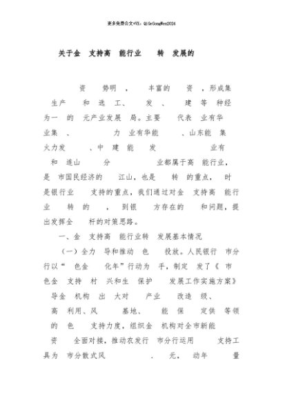 / 【七哥公文】2024年:关于金融支持高耗能行业低碳转型发展的调研报告+更多免费公文+VX:QiGeGongWen2024