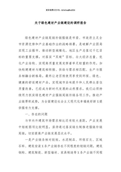 / 【七哥公文】2024年:关于绿色建材产业链建设的调研报告+更多免费公文+VX:QiGeGongWen2024
