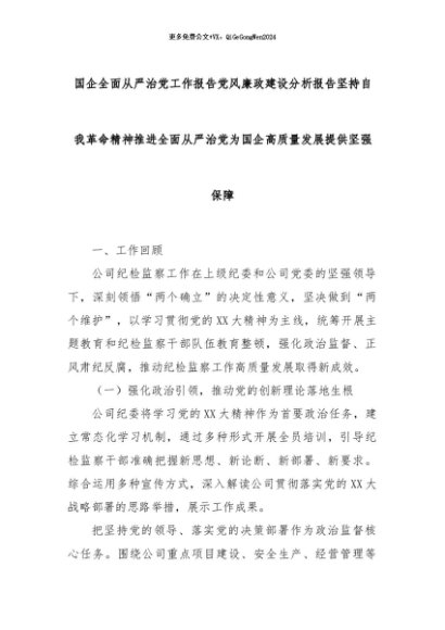 【七哥公文】2024年:国企全面从严治党工作报告党风廉政建设分析报告坚持自我革命精神推进全面从严治党为国企高质量发展提供坚强+更多免费公文+VX:QiGeGongWen2024