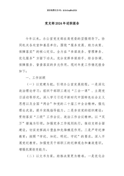 / 【七哥公文】2024年:党支部2024年述职报告+更多免费公文+VX:QiGeGongWen2024