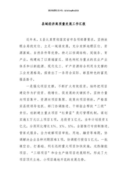 / 【七哥公文】2024年:县域经济高质量发展工作汇报+更多免费公文+VX:QiGeGongWen2024