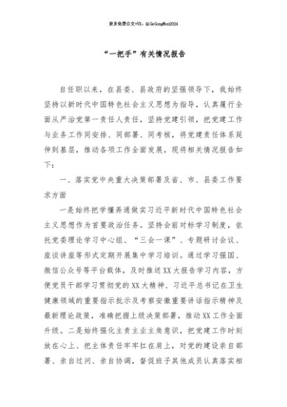 / 【七哥公文】2024年:“一把手”有关情况报告+更多免费公文+VX:QiGeGongWen2024