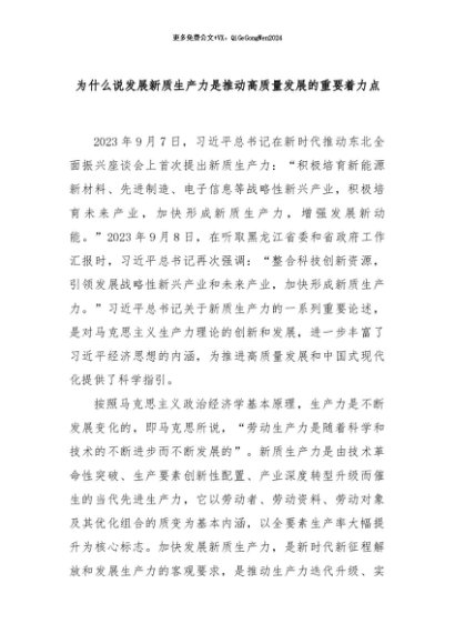 【七哥公文】2024年:为什么说发展新质生产力是推动高质量发展的重要着力点+更多免费公文+VX:QiGeGongWen2024
