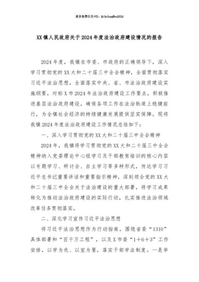 【七哥公文】2024年:XX镇人民政府关于2024年度法治政府建设情况的报告+更多免费公文+VX:QiGeGongWen2024