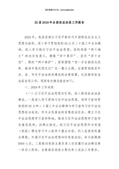 / 【七哥公文】2024年:XX县2024年全面依法治县工作报告+更多免费公文+VX:QiGeGongWen2024