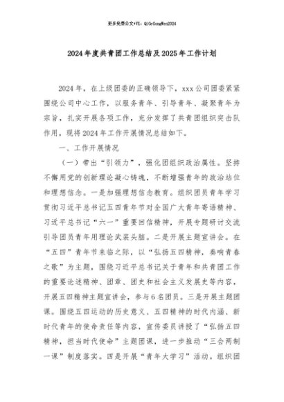 / 【七哥公文】2024年:2024年度共青团工作总结及2025年工作计划+更多免费公文+VX:QiGeGongWen2024