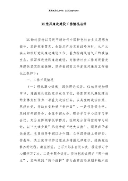 / 【七哥公文】2024年:XX党风廉政建设工作情况总结+更多免费公文+VX:QiGeGongWen2024