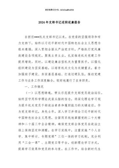 / 【七哥公文】2024年:2024年支部书记述职述廉报告+更多免费公文+VX:QiGeGongWen2024