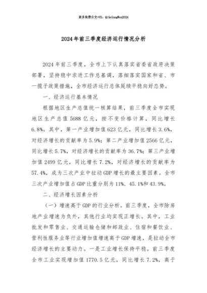 / 【七哥公文】2024年:2024年前三季度经济运行情况分析+更多免费公文+VX:QiGeGongWen2024