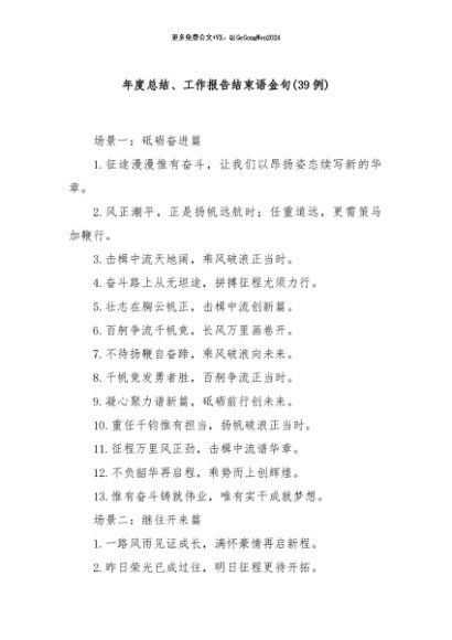 / 【七哥公文】2024年:(39例)年度总结、工作报告结束语金句+更多免费公文+VX:QiGeGongWen2024
