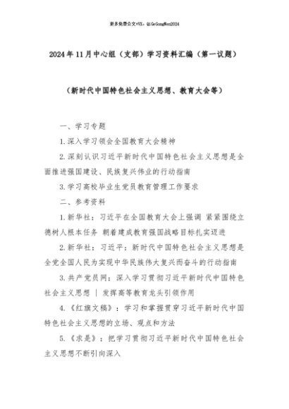 【七哥公文】2024年:2024年11月中心组(支部)学习资料汇编(第一议题)(新时代中国特色社会主义思想、教育大会等)+更多免费公文+VX:QiGeGongWen2024