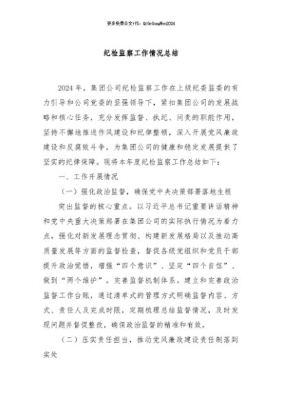 / 【七哥公文】2024年:纪检监察工作情况总结+更多免费公文+VX:QiGeGongWen2024
