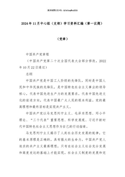 【七哥公文】2024年:2024年11月中心组(支部)学习资料汇编(第一议题)(党章)+更多免费公文+VX:QiGeGongWen2024