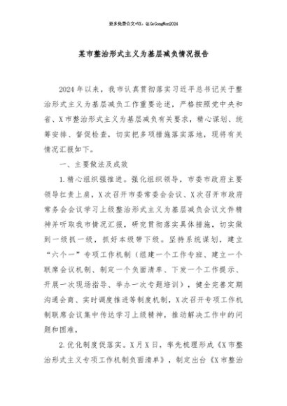 / 【七哥公文】2024年:某市整治形式主义为基层减负情况报告+更多免费公文+VX:QiGeGongWen2024