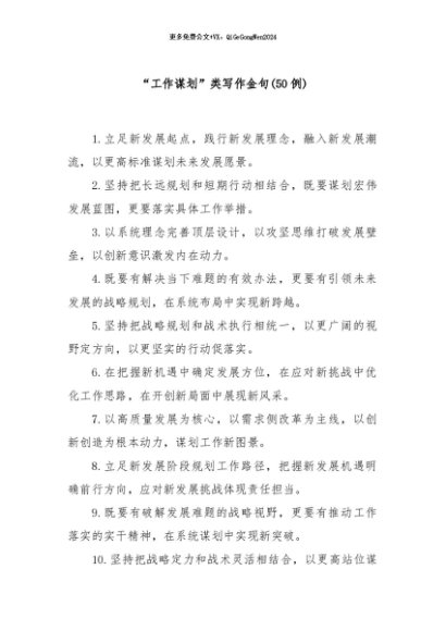 / 【七哥公文】2024年:(50例)“工作谋划”类写作金句+更多免费公文+VX:QiGeGongWen2024