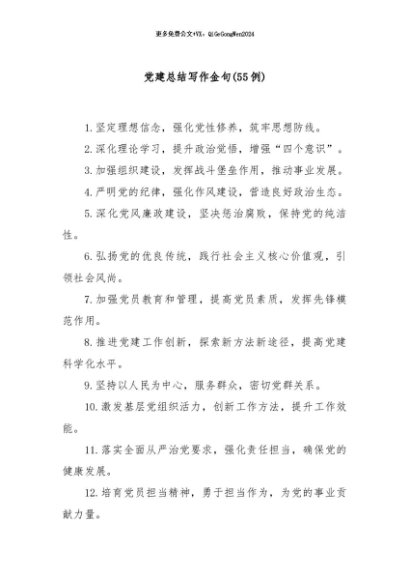 / 【七哥公文】2024年:(55例)党建总结写作金句+更多免费公文+VX:QiGeGongWen2024
