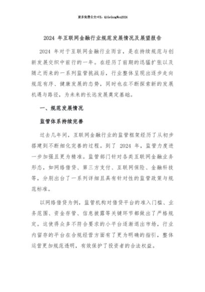 【七哥公文】2024年:2024 年互联网金融行业规范发展情况及展望报告+更多免费公文+VX:QiGeGongWen2024