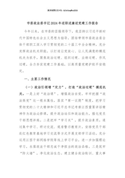 / 【七哥公文】2024年:市委政法委书记2024年述职述廉述党建工作报告+更多免费公文+VX:QiGeGongWen2024