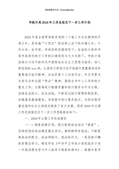 / 【七哥公文】2024年:市统计局2024年工作总结及下一步工作计划+更多免费公文+VX:QiGeGongWen2024