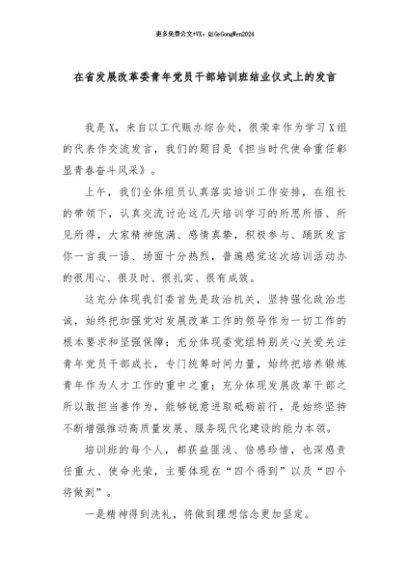 / 【七哥公文】2024年:在省发展改革委青年党员干部培训班结业仪式上的发言+更多免费公文+VX:QiGeGongWen2024