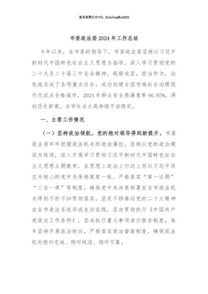/ 【七哥公文】2024年:市委政法委2024年工作总结+更多免费公文+VX:QiGeGongWen2024