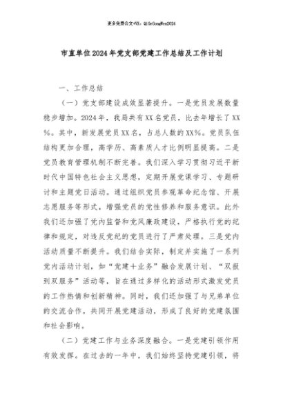 / 【七哥公文】2024年:市直单位2024年党支部党建工作总结及工作计划+更多免费公文+VX:QiGeGongWen2024