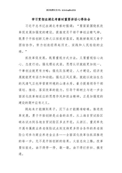 / 【七哥公文】2024年:学习贯彻在湖北考察时重要讲话心得体会+更多免费公文+VX:QiGeGongWen2024