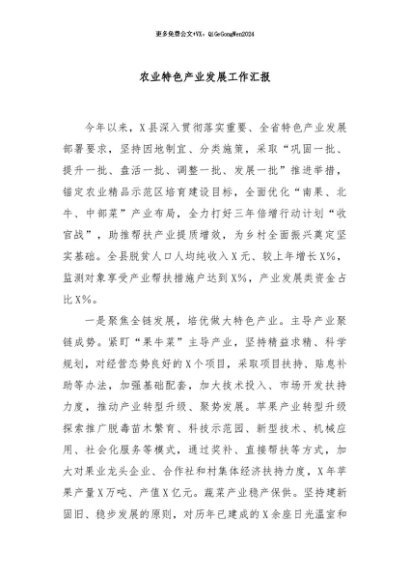 / 【七哥公文】2024年:农业特色产业发展工作汇报+更多免费公文+VX:QiGeGongWen2024