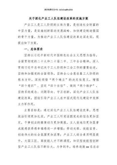 / 【七哥公文】2024年:关于深化产业工人队伍建设改革的实施方案+更多免费公文+VX:QiGeGongWen2024