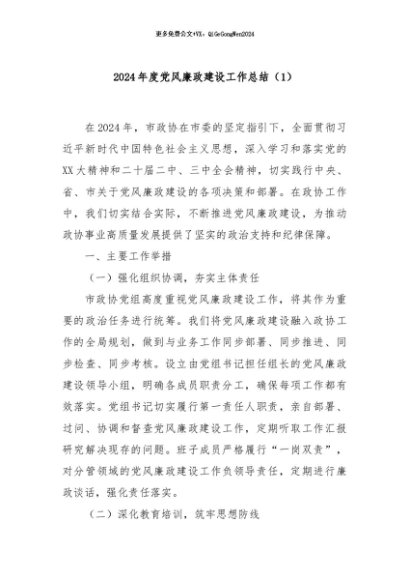 / 【七哥公文】2024年:2024年度党风廉政建设工作总结(1)+更多免费公文+VX:QiGeGongWen2024