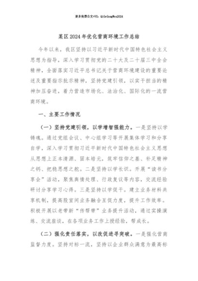 / 【七哥公文】2024年:某区2024年优化营商环境工作总结+更多免费公文+VX:QiGeGongWen2024