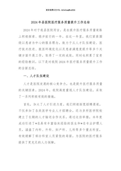 / 【七哥公文】2024年:2024年县医院医疗服务质量提升工作总结+更多免费公文+VX:QiGeGongWen2024