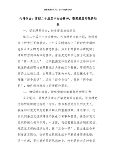 【七哥公文】2024年:心得体会:贯彻二十届三中全会精神,凝聚基层治理新动能+更多免费公文+VX:QiGeGongWen2024