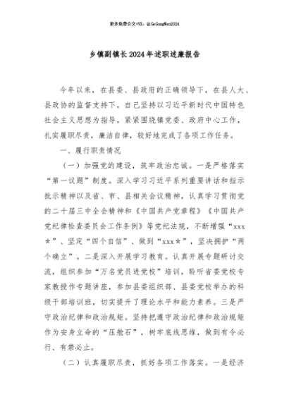 / 【七哥公文】2024年:乡镇副镇长2024年述职述廉报告+更多免费公文+VX:QiGeGongWen2024