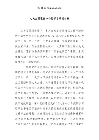/ 【七哥公文】2024年:人大主任理论中心组学习研讨材料+更多免费公文+VX:QiGeGongWen2024