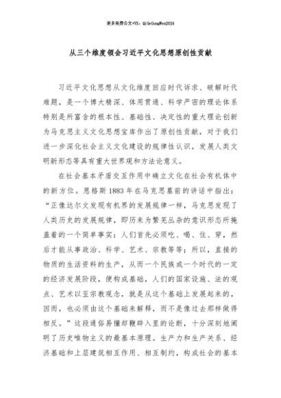 / 【七哥公文】2024年:从三个维度领会习近平文化思想原创性贡献+更多免费公文+VX:QiGeGongWen2024