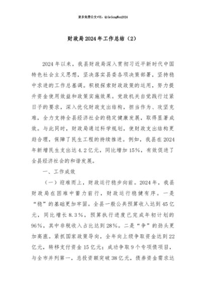 / 【七哥公文】2024年:财政局2024年工作总结(2)+更多免费公文+VX:QiGeGongWen2024