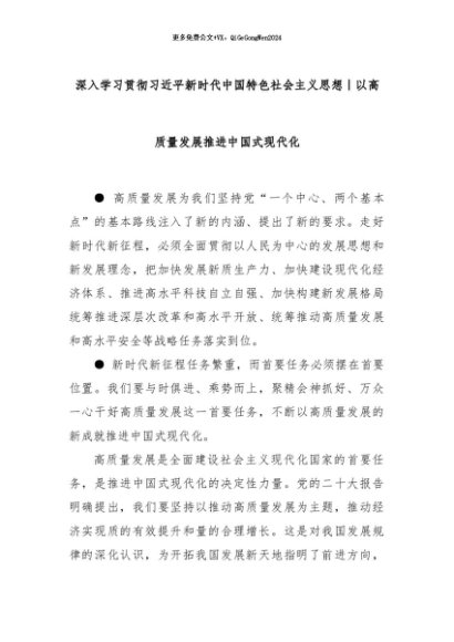 【七哥公文】2024年:深入学习贯彻习zsj新时代中国特色社会主义思想|以高质量发展推进中国式现代化+更多免费公文+VX:QiGeGongWen2024