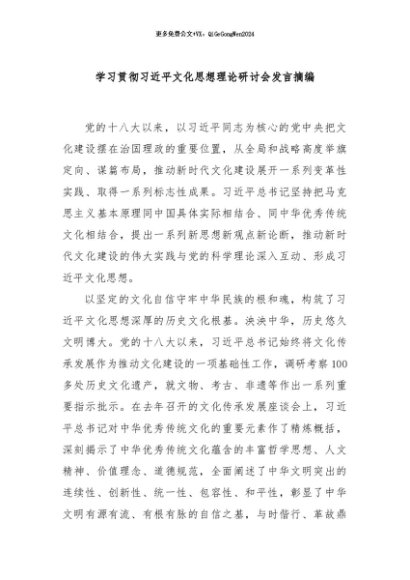 / 【七哥公文】2024年:学习贯彻习总书记文化思想理论研讨会发言摘编+更多免费公文+VX:QiGeGongWen2024