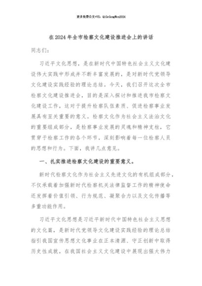 / 【七哥公文】2024年:在2024年全市检察文化建设推进会上的讲话+更多免费公文+VX:QiGeGongWen2024
